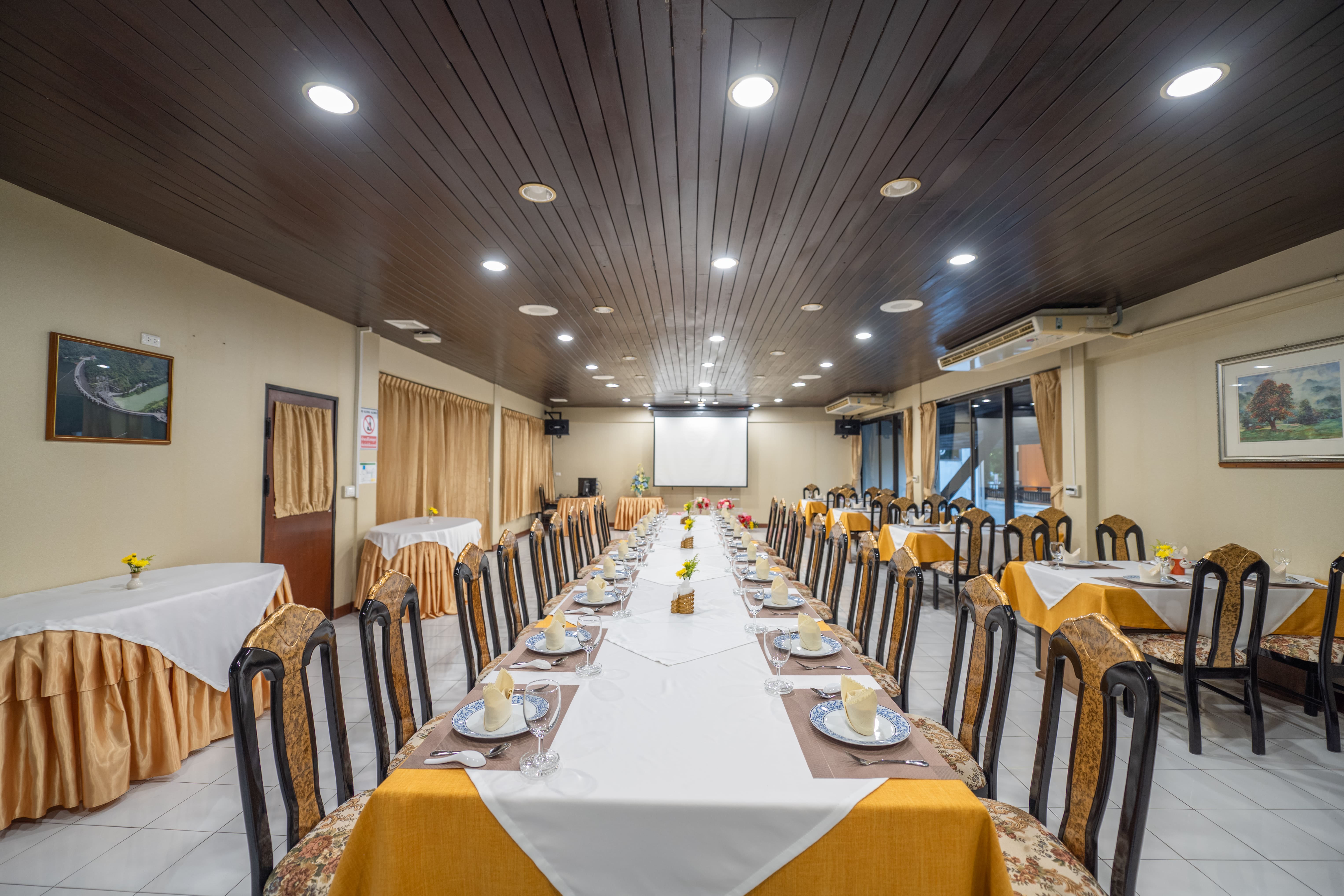 ห้องห้วยริน ห้องจัดเลี้ยงขนาดกะทัดรัด พร้อมด้วยสิ่งอำนวยความสะดวกและการบริการอย่างมีระดับ มีโปรเจคเตอร์ ไม่มีค่าบริการอื่นนอกเหนือจากค่าอาหารพร้อมให้ผู้ใช้บริการสัมผัสกับประสบการณ์ที่น่าประทับใจ