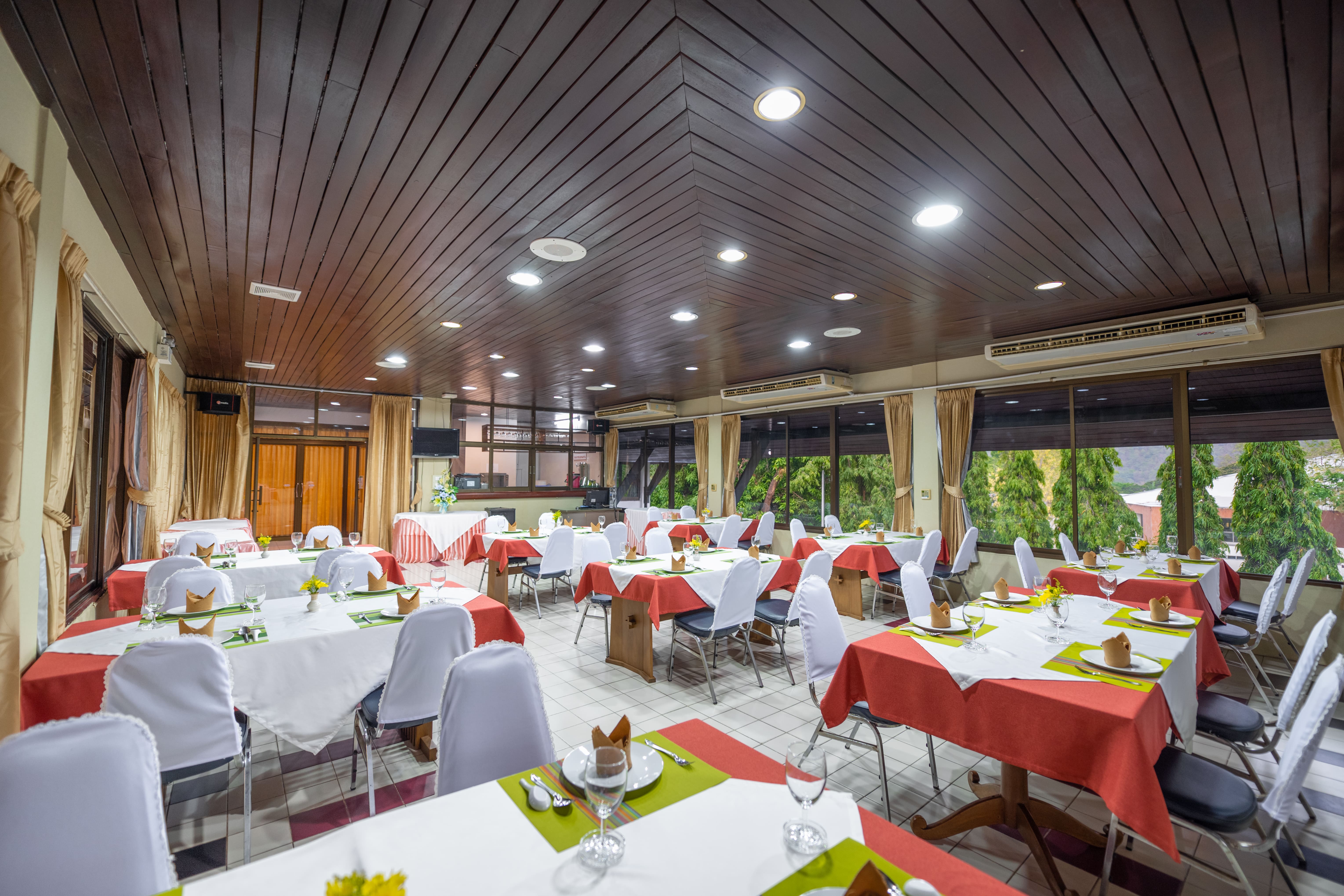 ห้องห้วยแก่ง ห้องจัดเลี้ยงขนาดกะทัดรัด ตกแต่งสวยงาม สามารถชมวิวภายนอกได้ อบอุ่นเป็นกันเอง ไม่มีค่าบริการอื่นนอกเหนือจากค่าอาหารพร้อมให้ผู้ใช้บริการสัมผัสกับประสบการณ์ที่น่าประทับใจ