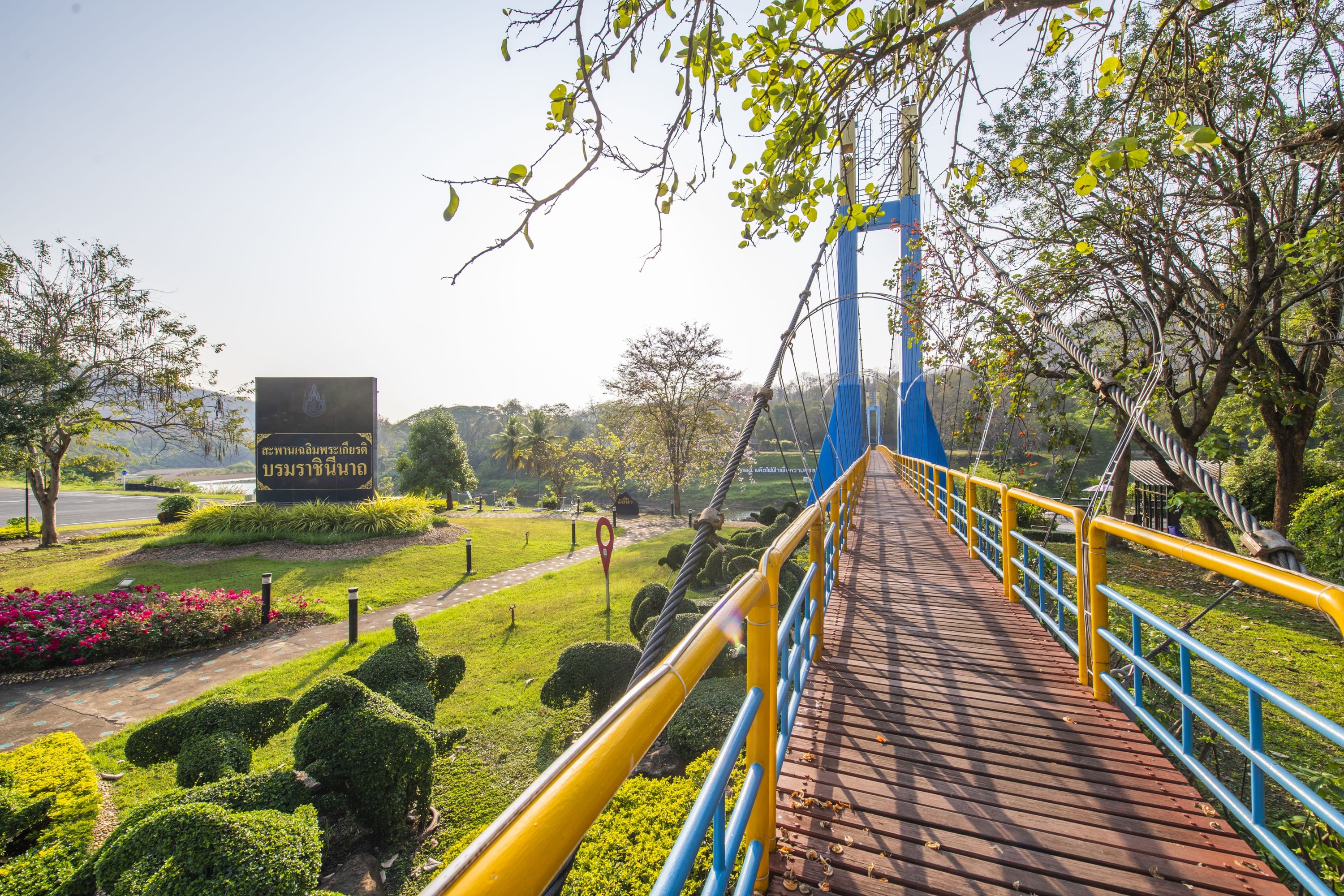 สะพานแขวนสีเหลือง-ฟ้าตั้งตระหง่านทอดข้ามลำน้ำน่าน อีกหนึ่งจุดห้ามพลาดต้องเก็บภาพความสวยงามของธรรมชาติ |