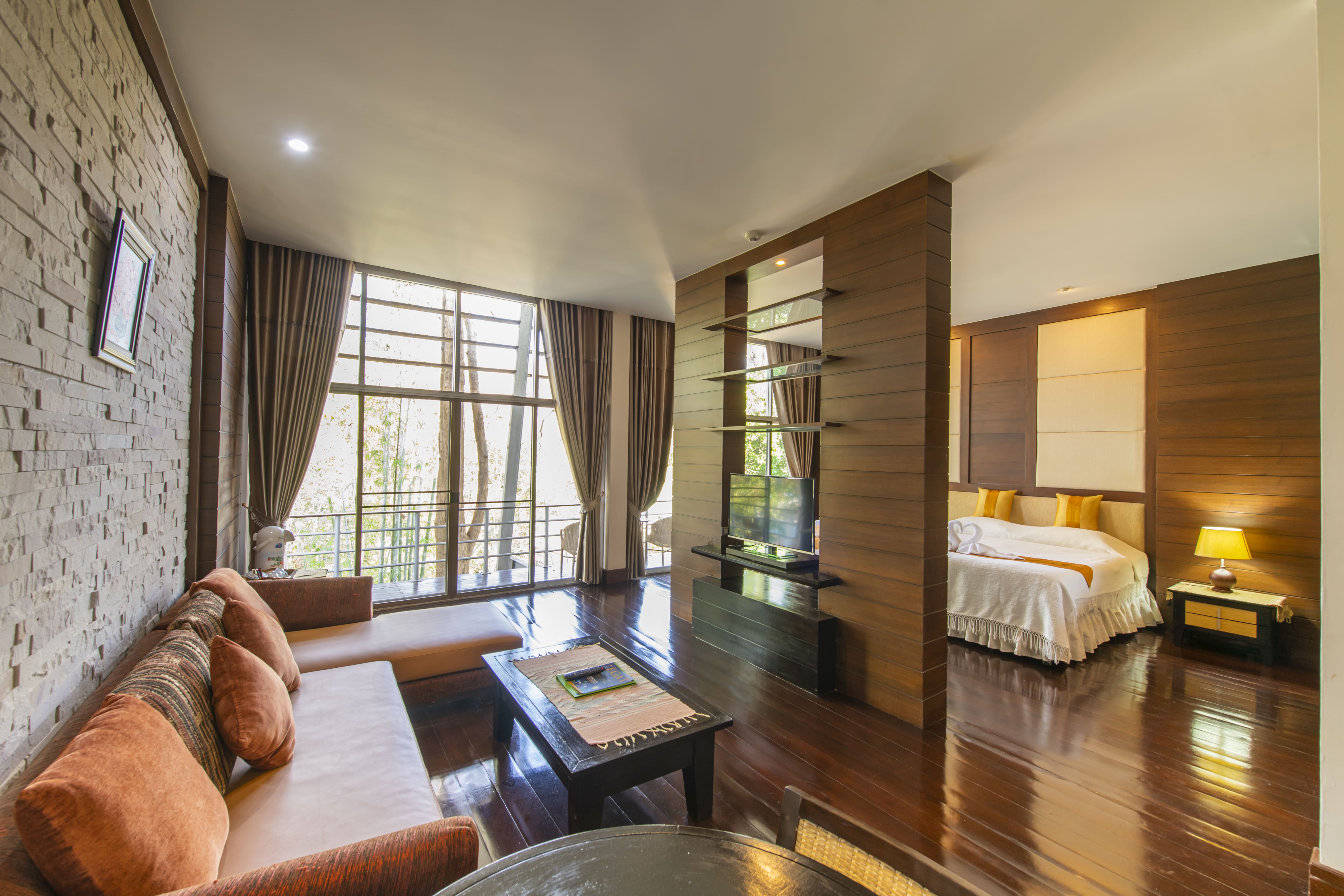 บ้านรังนกกระจอก (suite) บ้านพักโอ่โถง หรูหรา เพลิดเพลินและผ่อนคลายท่ามกลางธรรมชาติ เป็นส่วนตัว พร้อมด้วยสิ่งอำนวยความสะดวกทั้งหมดที่ต้องการ มีโถงขนาดใหญ่เพื่อรับแขก มีอ่างอาบน้ำ